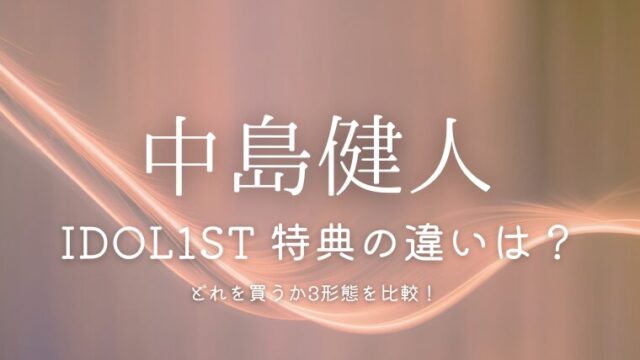 ジャニーズ 中島健人アルバム「IDOL1ST」特典の違いは?どれを買うか3形態を比較! 2025年12月2日 管理人 https://i-sub.net/wp-content/uploads/2025/07/i-sub-1.png アイサブ